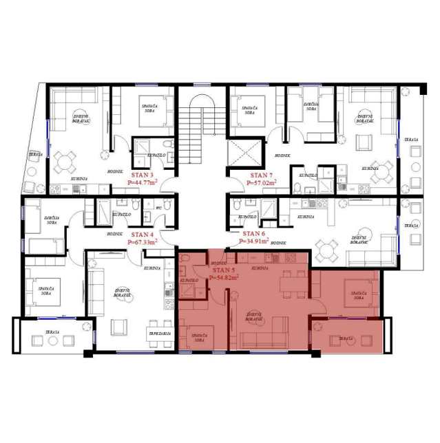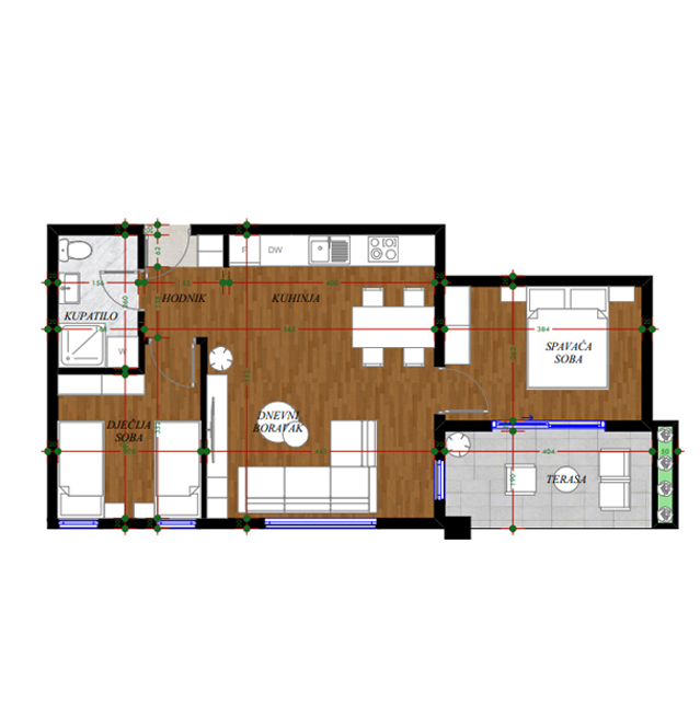 Opremljenost na 3D prikazima je predlog uredjenja. U cijenu stana nije uračunato opremanje i nameštanje sa prezentacije.