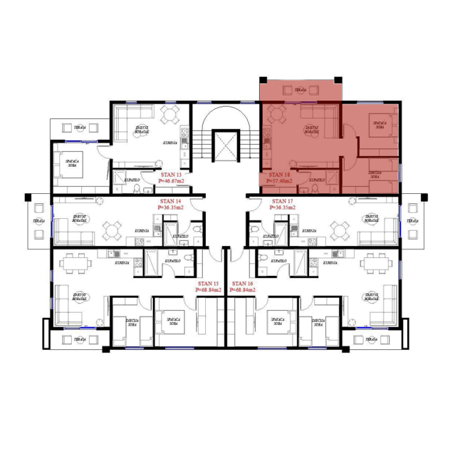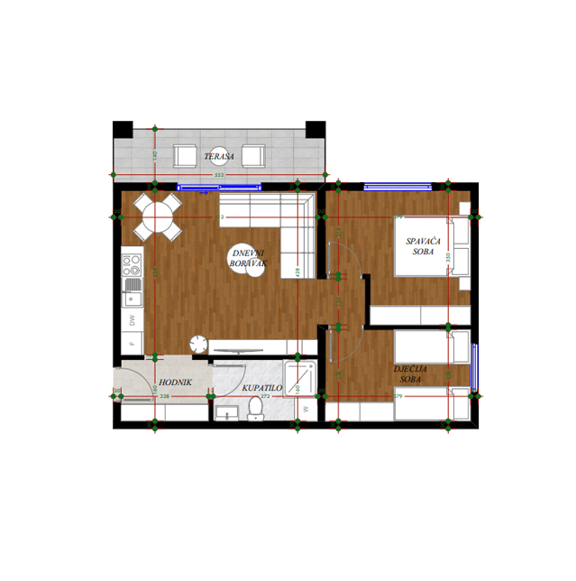 Opremljenost na 3D prikazima je predlog uredjenja. U cijenu stana nije uračunato opremanje i nameštanje sa prezentacije.