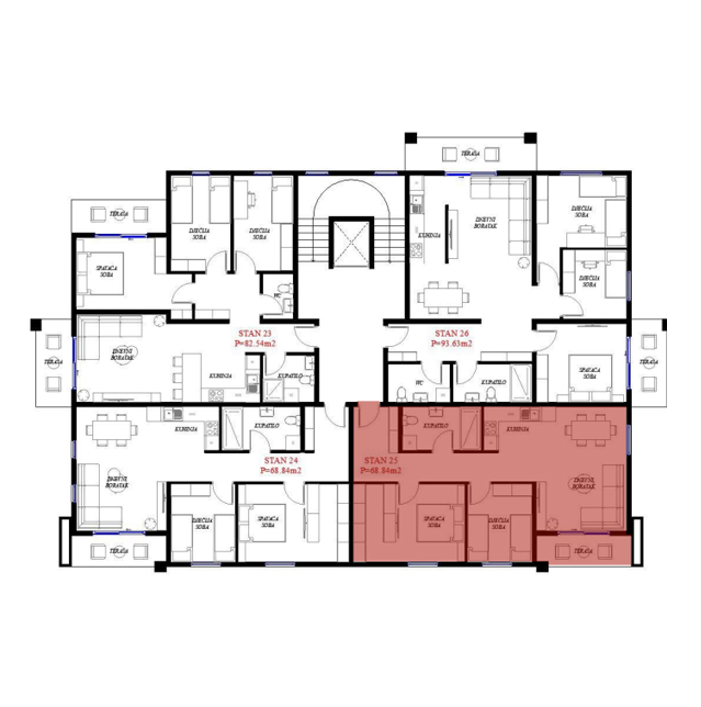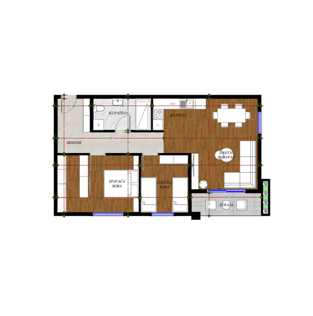 Opremljenost na 3D prikazima je predlog uredjenja. U cijenu stana nije uračunato opremanje i nameštanje sa prezentacije.