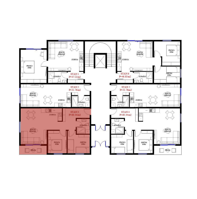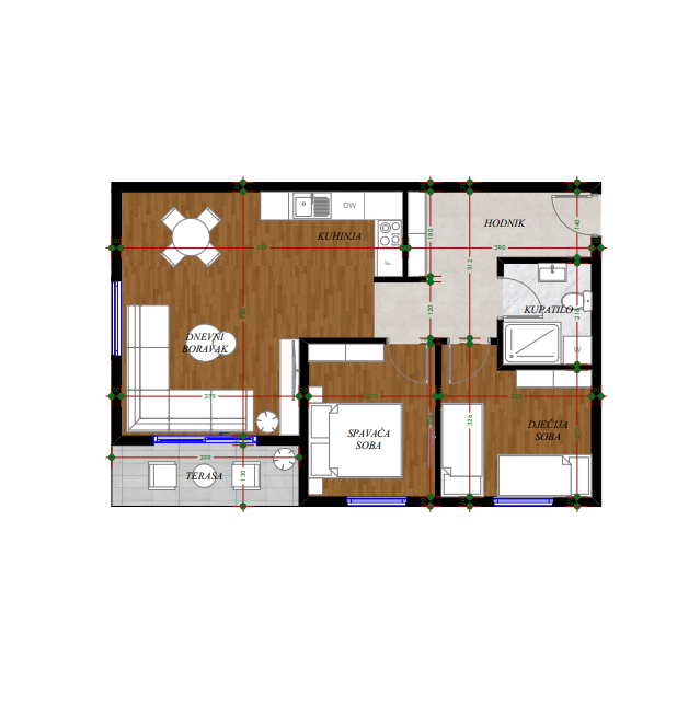 Opremljenost na 3D prikazima je predlog uredjenja. U cijenu stana nije uračunato opremanje i nameštanje sa prezentacije.