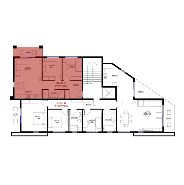 Opremljenost na 3D prikazima je predlog uredjenja. U cijenu stana nije uračunato opremanje i nameštanje sa prezentacije.