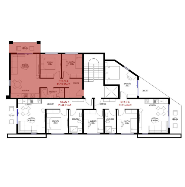Opremljenost na 3D prikazima je predlog uredjenja. U cijenu stana nije uračunato opremanje i nameštanje sa prezentacije.