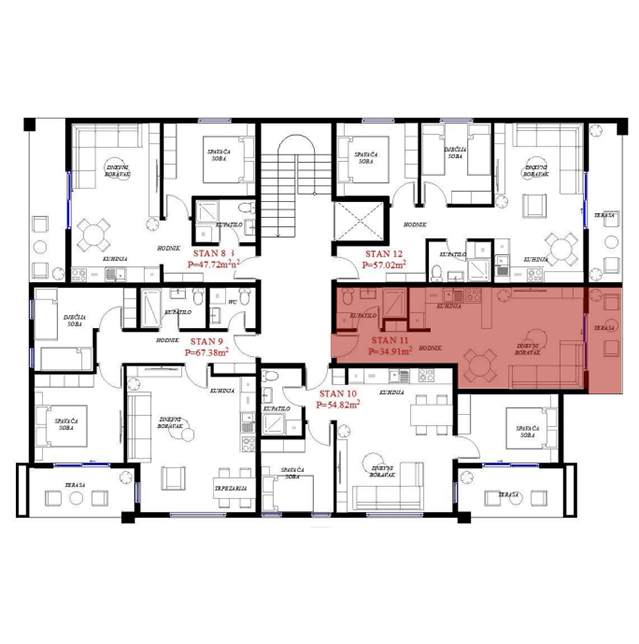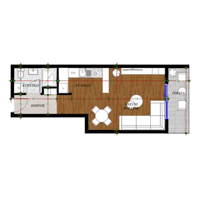 Opremljenost na 3D prikazima je predlog uredjenja. U cijenu stana nije uračunato opremanje i nameštanje sa prezentacije.
