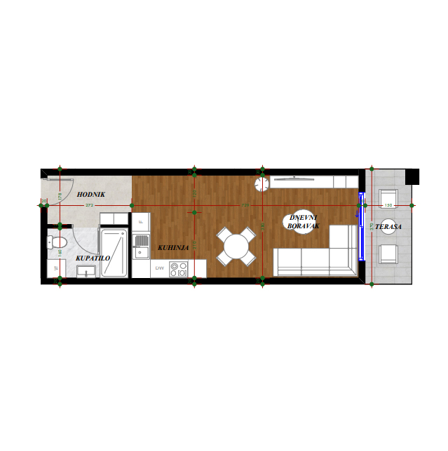 Opremljenost na 3D prikazima je predlog uredjenja. U cijenu stana nije uračunato opremanje i nameštanje sa prezentacije.