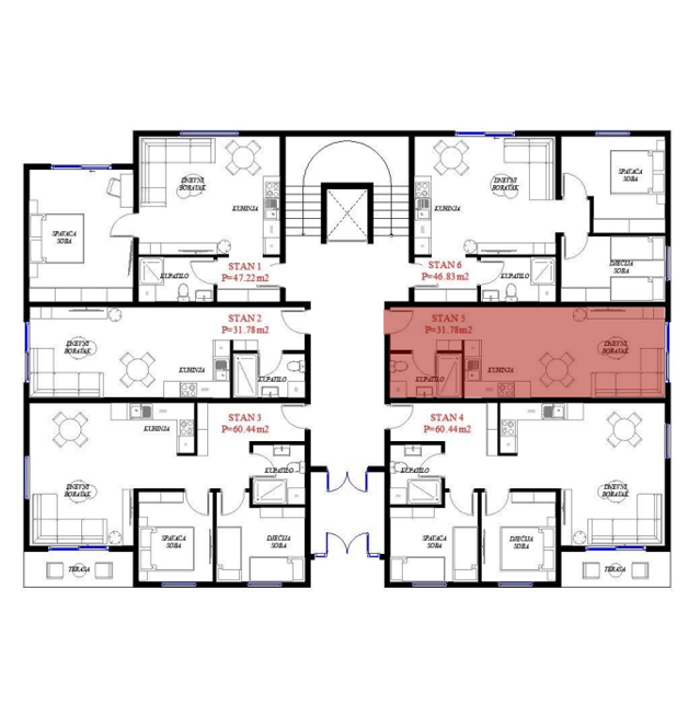 Opremljenost na 3D prikazima je predlog uredjenja. U cijenu stana nije uračunato opremanje i nameštanje sa prezentacije.