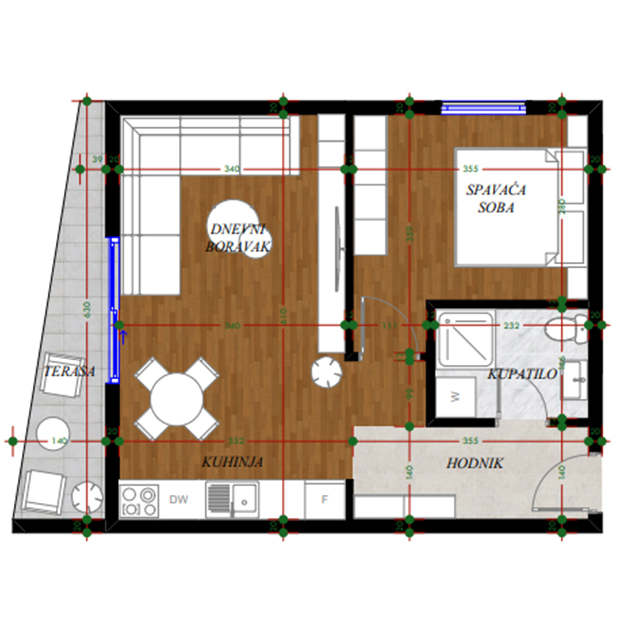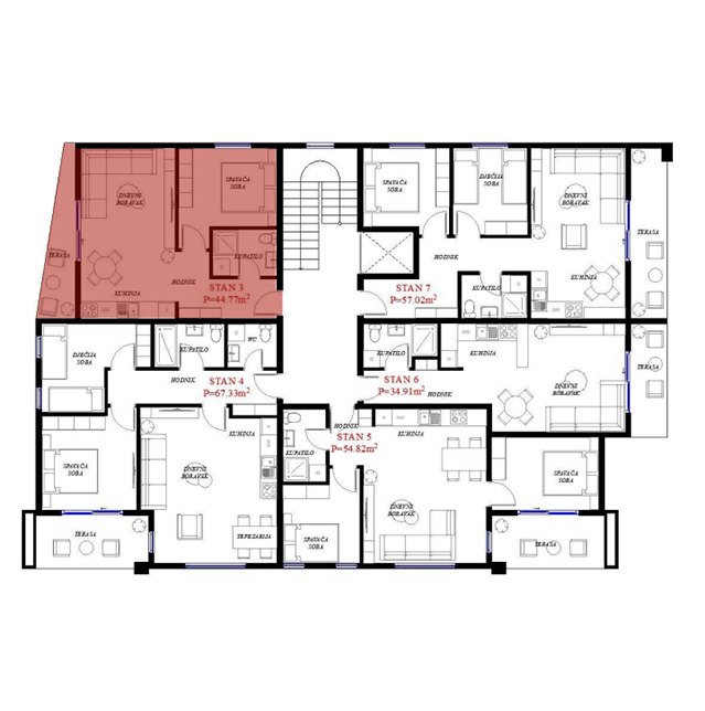 Opremljenost na 3D prikazima je predlog uredjenja. U cijenu stana nije uračunato opremanje i nameštanje sa prezentacije.
