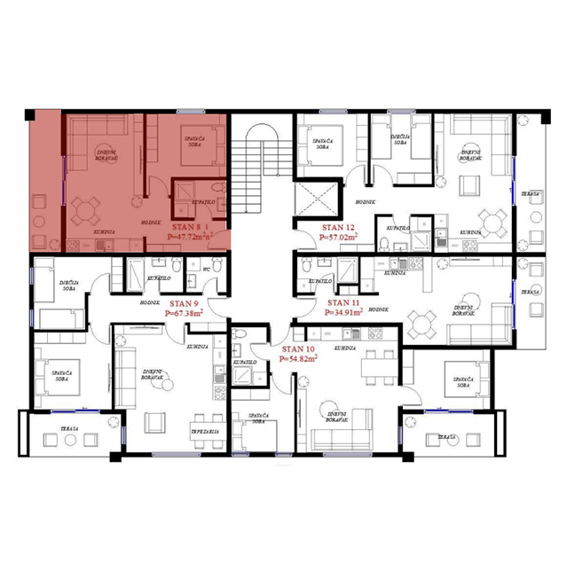 Opremljenost na 3D prikazima je predlog uredjenja. U cijenu stana nije uračunato opremanje i nameštanje sa prezentacije.