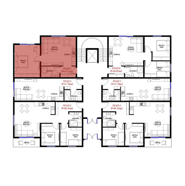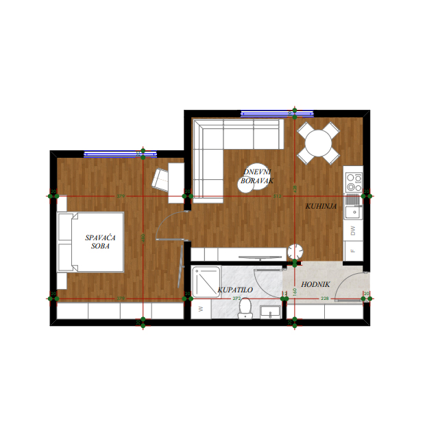Opremljenost na 3D prikazima je predlog uredjenja. U cijenu stana nije uračunato opremanje i nameštanje sa prezentacije.