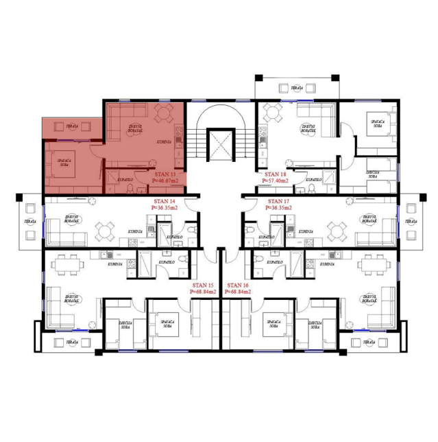 Opremljenost na 3D prikazima je predlog uredjenja. U cijenu stana nije uračunato opremanje i nameštanje sa prezentacije.
