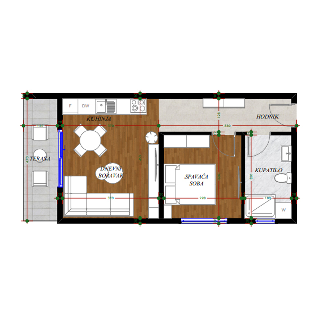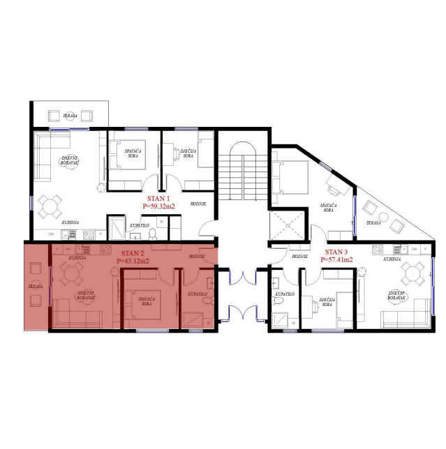 Opremljenost na 3D prikazima je predlog uredjenja. U cijenu stana nije uračunato opremanje i nameštanje sa prezentacije.