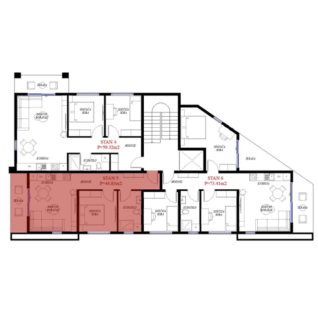 Opremljenost na 3D prikazima je predlog uredjenja. U cijenu stana nije uračunato opremanje i nameštanje sa prezentacije.