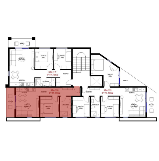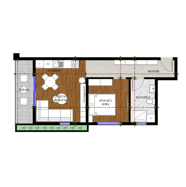 Opremljenost na 3D prikazima je predlog uredjenja. U cijenu stana nije uračunato opremanje i nameštanje sa prezentacije.