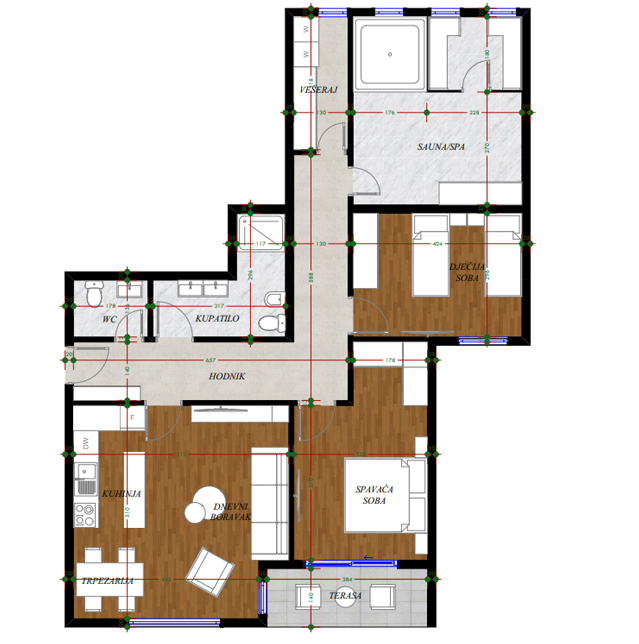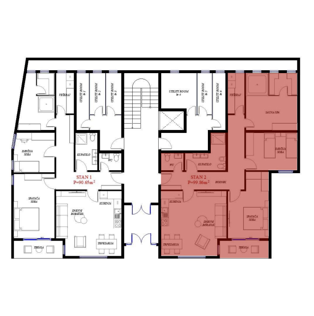 Opremljenost na 3D prikazima je predlog uredjenja. U cijenu stana nije uračunato opremanje i nameštanje sa prezentacije. Ovi stanovi imaju turska kupatila, sunu, kancelariju i sopstveno dvorište.