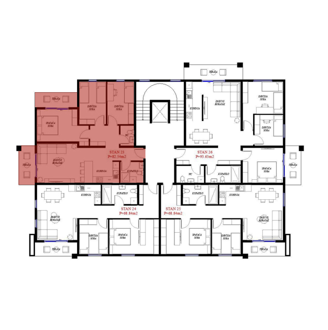 Opremljenost na 3D prikazima je predlog uredjenja. U cijenu stana nije uračunato opremanje i nameštanje sa prezentacije.