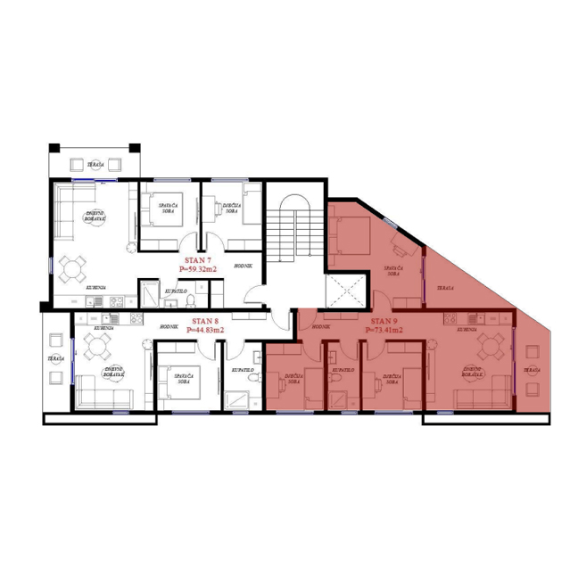 Opremljenost na 3D prikazima je predlog uredjenja. U cijenu stana nije uračunato opremanje i nameštanje sa prezentacije.