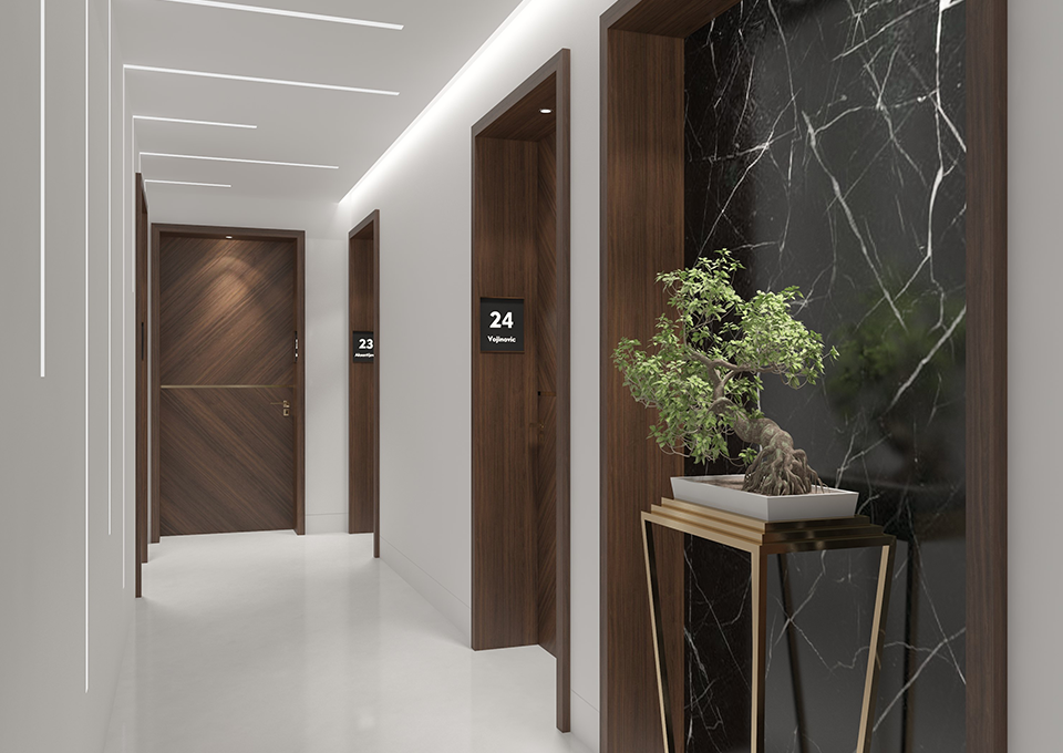 Ulazna sigurnosna vrata brenda Bosal, visine 240cm i širine 110cm, blindirana su i pružaju maksimalan stepen protivprovalne i protivpožarne zaštite. Sigurnosna kasa brava sa zaključavanjem u tri smera i šest tačaka, poseduje i tri fiksna šipa za blokiranje šarki, a zvučna izolovanost ide do 42 decibela. Visokokvalitetna unutrašnja vrata visine 240cm i širine 90cm (kod manjih stanova) i 100cm (kod većih stanova) jednokrilna su i od lameliranog drveta, čiji je štok obložen medijapanom od 4mm, a oko vrata sadrži tri preklopne šarke, dihtung gumu i magnetnu bravu.